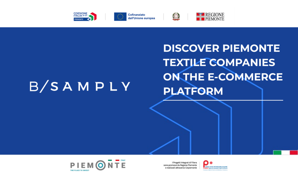 Yesterday, Novembre 11th, the Piemonte Community Webinar successfully brought together textile and accessories companies from the Piemonte region to explore new opportunities for international growth. The initiative, promoted by CEIPIEMONTE s.c.p.a. on behalf of the Regione Piemonte, highlighted how local excellence can meet global demand through B/SAMPLY, a digital platform connecting over 8,500 buyers, 120 suppliers, and more than 40,000 products worldwide.